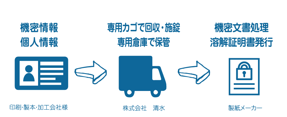 安全な手順を順守し、製紙メーカーから発行される『溶解証明書』によりすべて漏洩することなく処理できます。